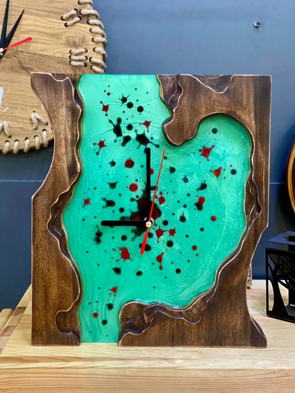 Часы из массива дуба и эпоксидной смолы ручной работы, станут отличным дополнением любого интерьера!