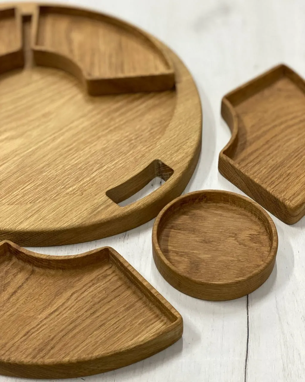 • Менажницу нужно обязательно мыть вручную в тёплой воде. Замачивание изделия в раковине повредит его: от воды древесина может испортиться.