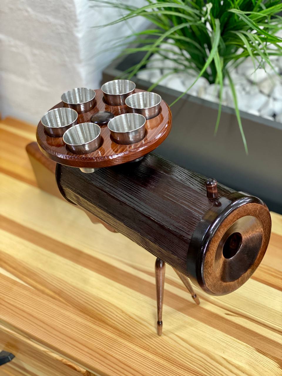 Мини-бар из дерева, идеальный подарок для настоящего мужчины. Подарочный настольный набор "Пулемет" изготовлен из высококачественного материала. В комплект бара входит отсек для напитка диаметром 73мм (бутылка - в комплект не входит) отсек для стопок- 6 шт. (стопки в комплект входят). Бар будет отличным подарком на 23 февраля, на день рождения, подарок для коллеги, для папы, для брата, для мужа, для любимого, для начальника.