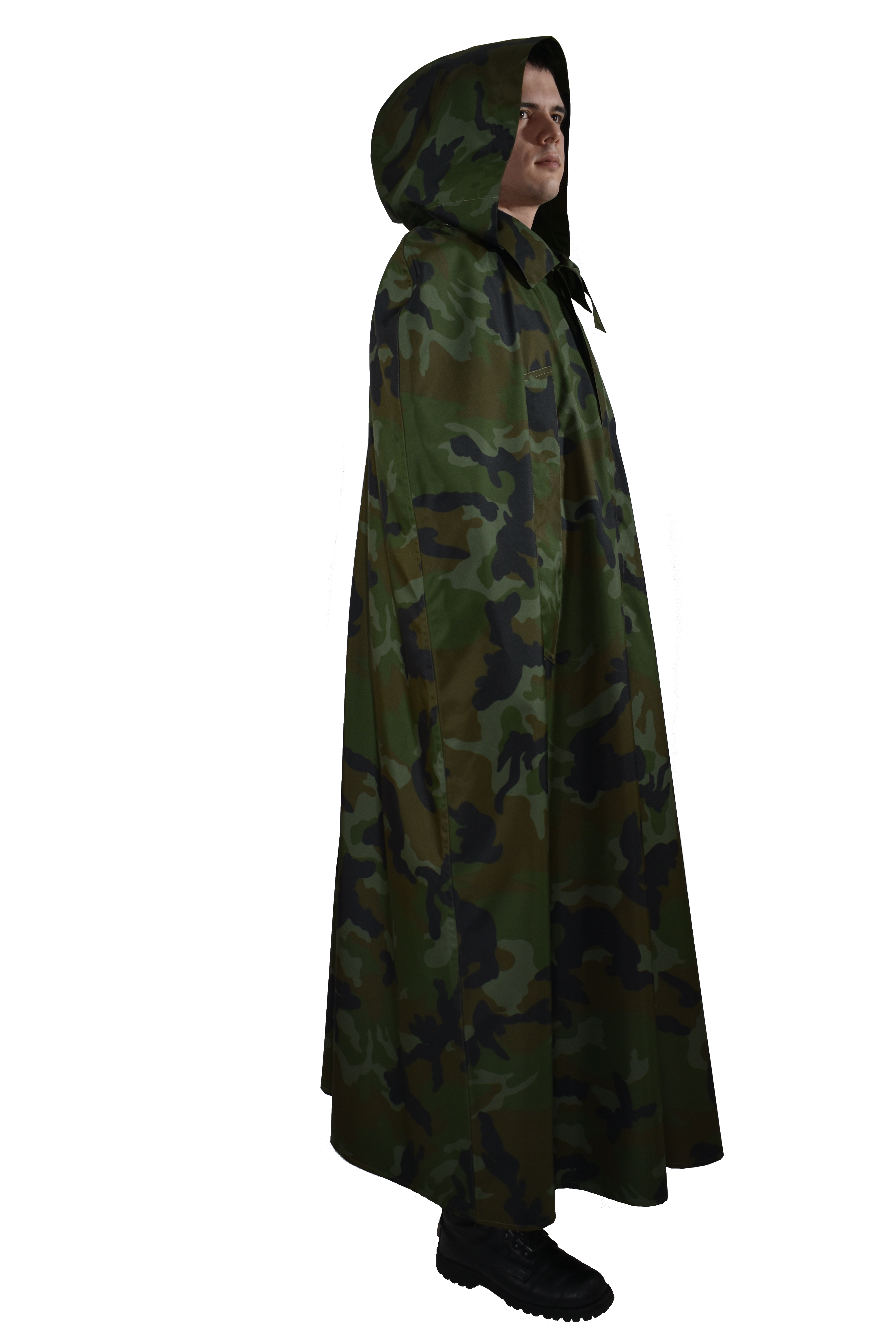 Плащи-накидки по размерам и ростам, требованиям к материалам, внешнему виду и качеству изготовления должны соответствовать требованиям ГОСТ 6257-52, промышленной технологии поузловой обработки одежды, образцу-эталону, утвержденному в соответствии с ГОСТ 15.007-88 и техническому описанию на модель. Плащ-накидка -это универсальное изделие, благодаря ткани с водоотталкивающим эффектом, которое подходит для ношения в неблагоприятных погодных условиях (дождь или снег). Плащ оснащен съемным капюшоном и прорезями для рук. Застежка скрытая на пуговицы. Подойдет для любителей рыбалки, охоты или просто, для тех, кто любит активный отдых на природе.