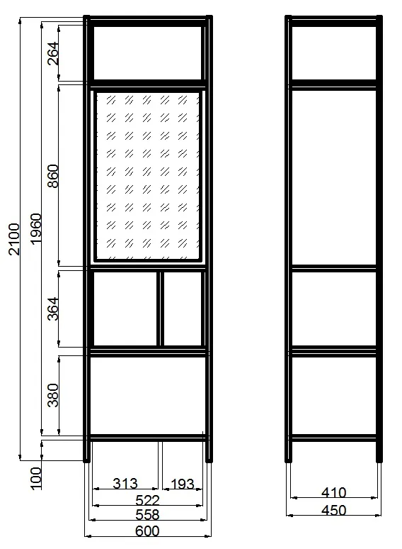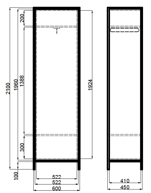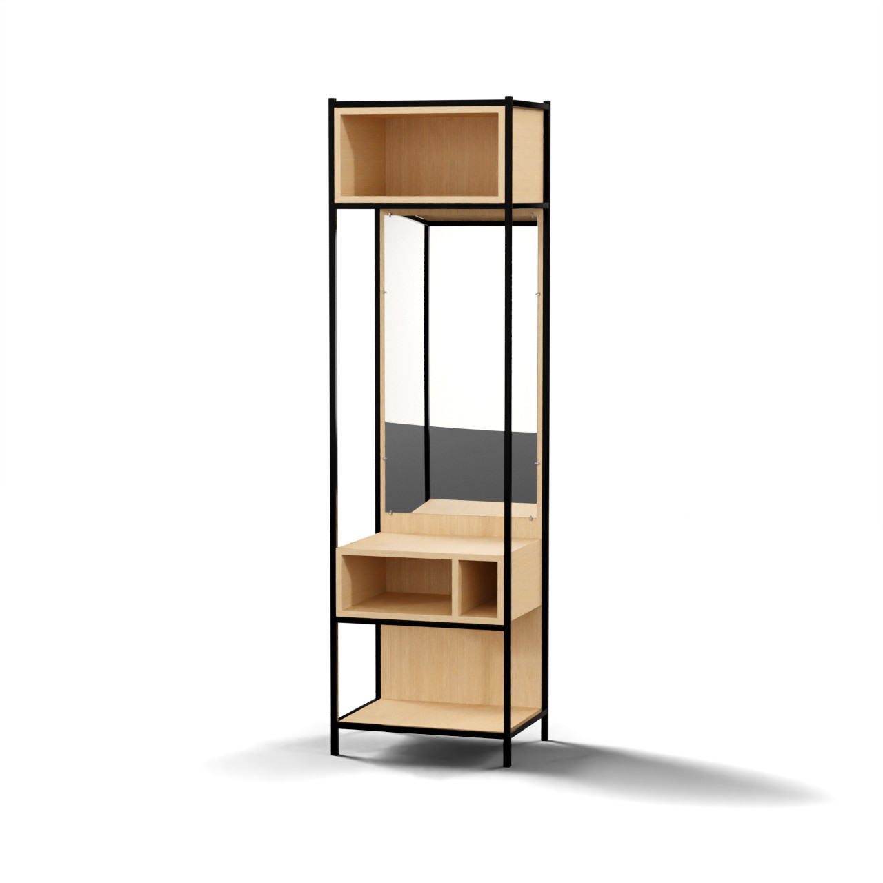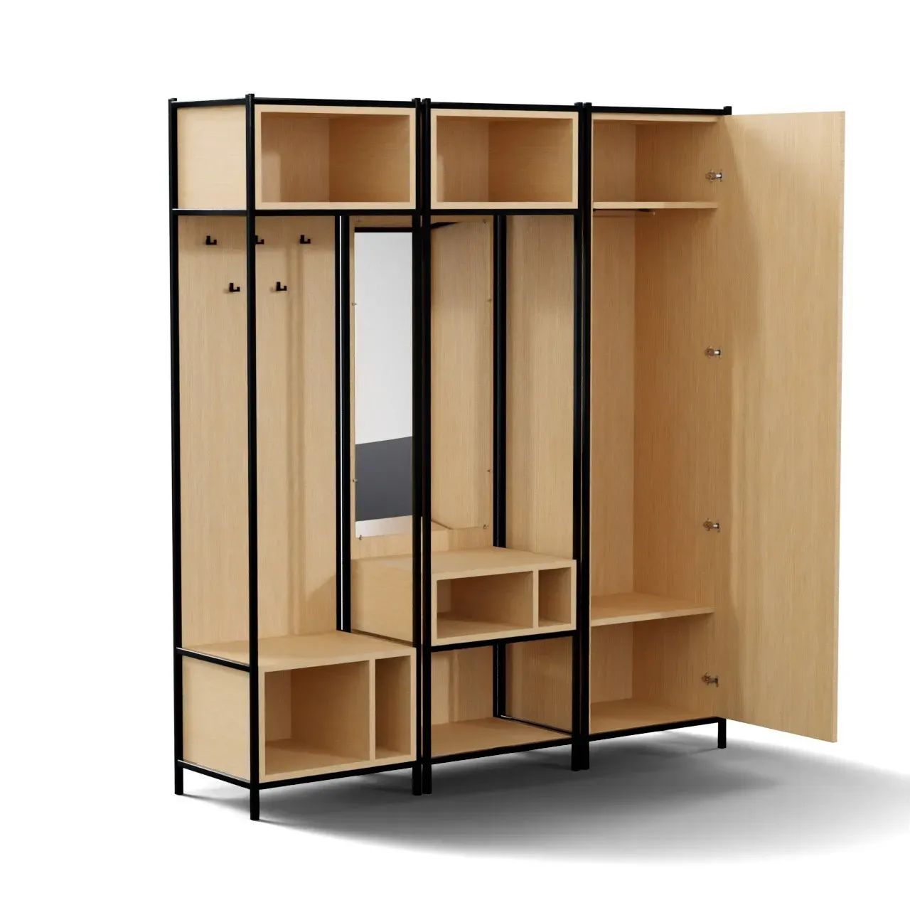 Секции прихожей изготовлены из металлического каркаса из стальной профильной трубы 20х20х2мм и ламинированной древесно-стружечной плиты толщиной 18 мм.