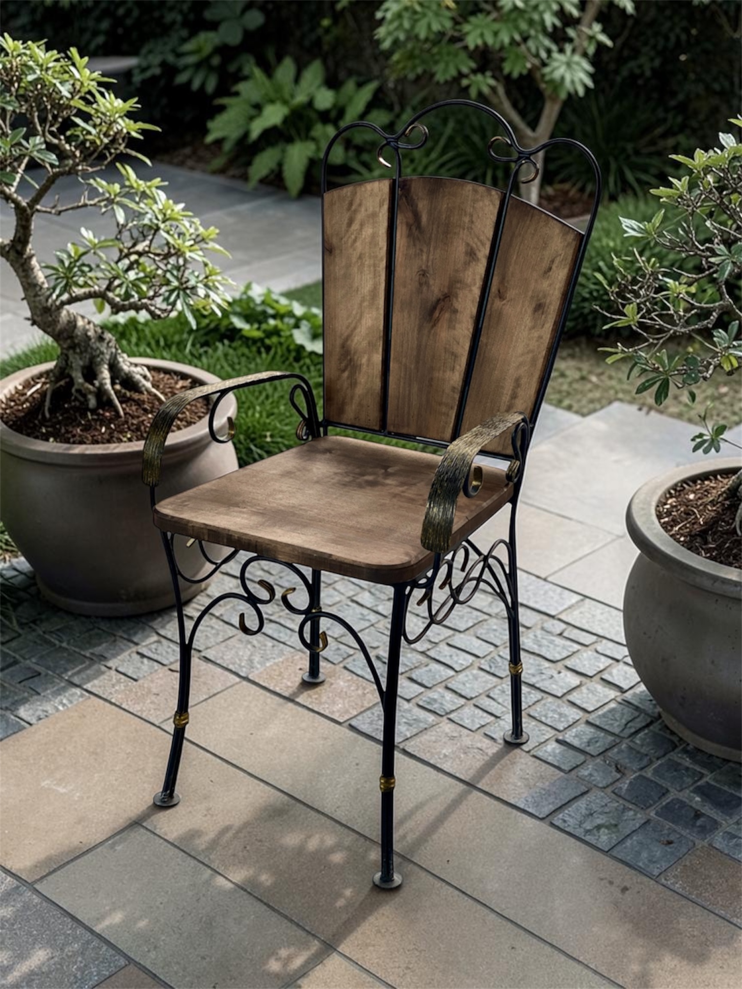 Кованый стул с деревянными элементами из берёзы — элегантность, прочность и универсальность в одном изделии.