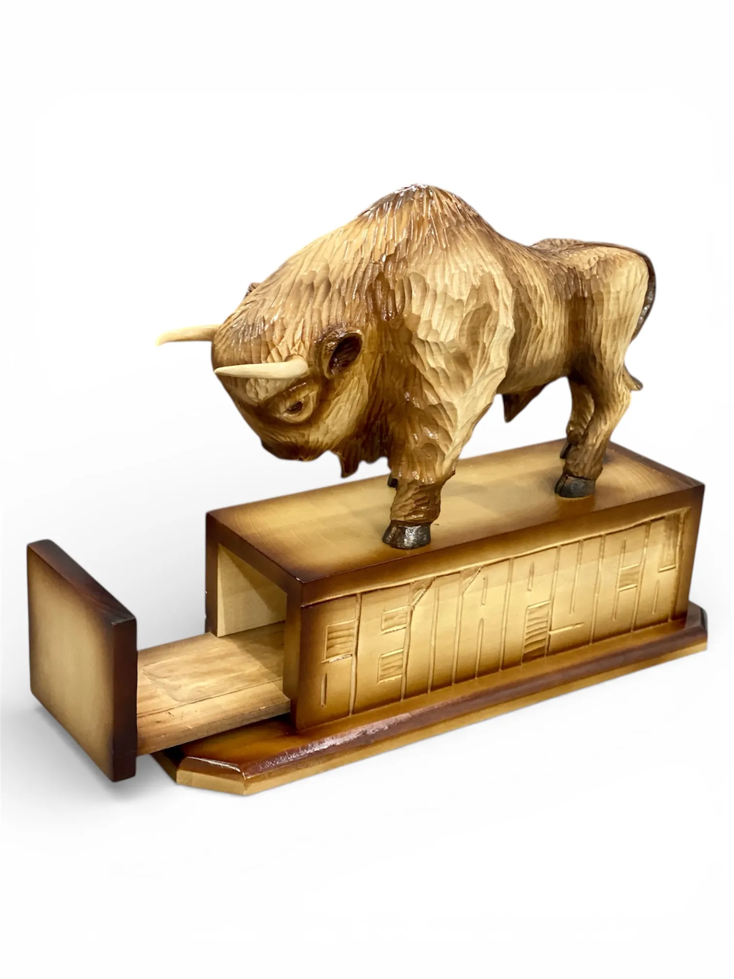 Деревянная резная фигурка в виде зубра — это не просто предмет интерьера, а настоящее произведение искусства, которое способно украсить любое пространство и стать уникальным подарком на особые случаи.